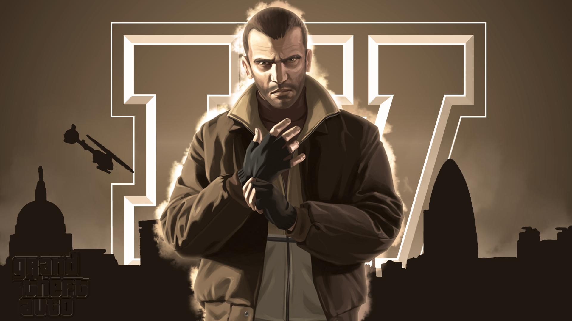 Niko Bellic, арт с героем игры GTA4 обои для рабочего стола, картинки, фото, 1920x1080. | |||||||||||||||||||||||