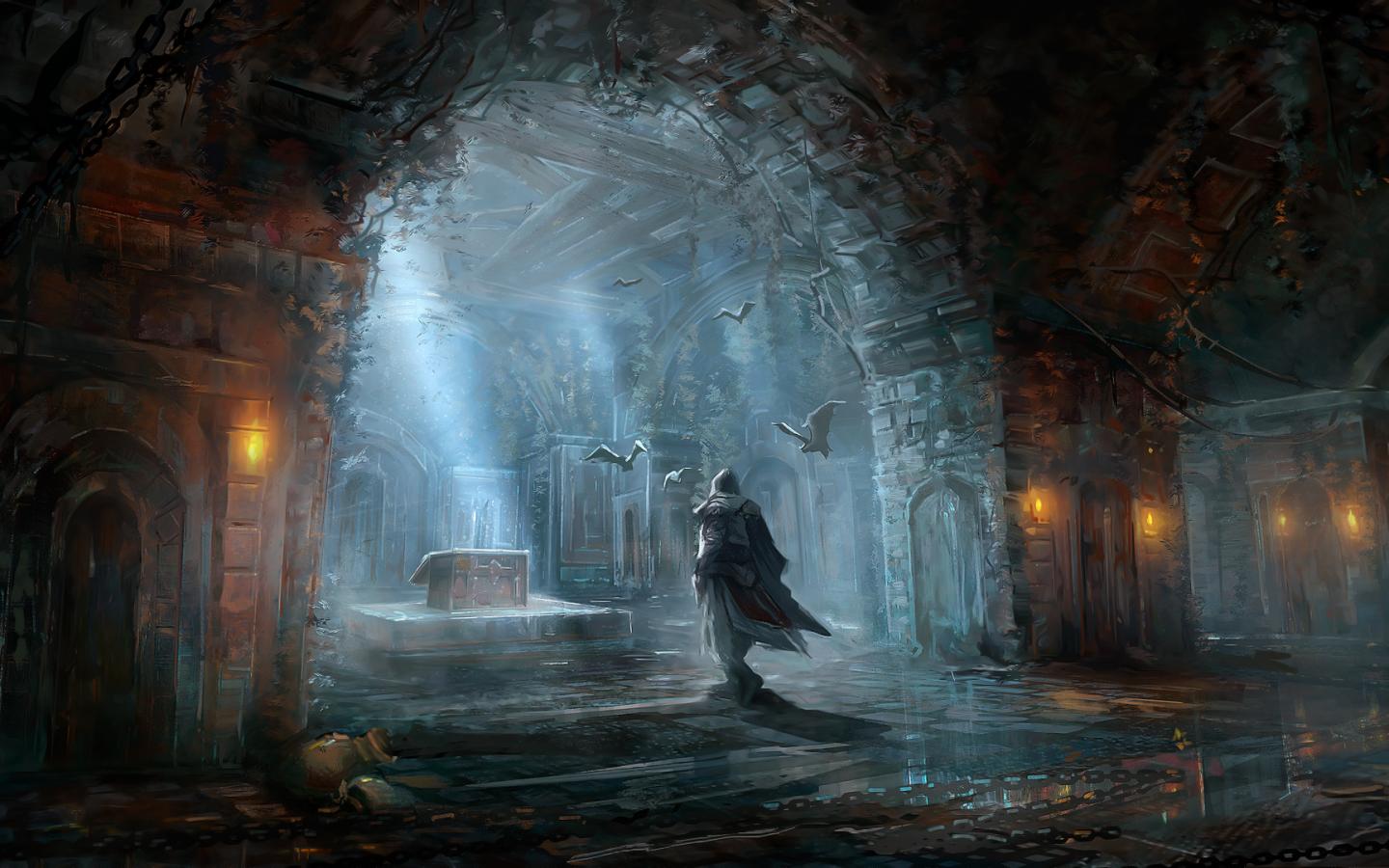 Игры, рисунок, мужчина, помещение, летучие мыши, фантастика обои для рабочего стола, картинки, фото, 1440x900. | ||||||||||||||||||||||