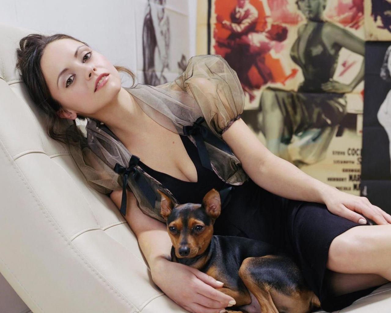 Девушка на кушетке с собачкой обои для рабочего стола, картинки, фото, 1280x1024. | ||||||||||||||||