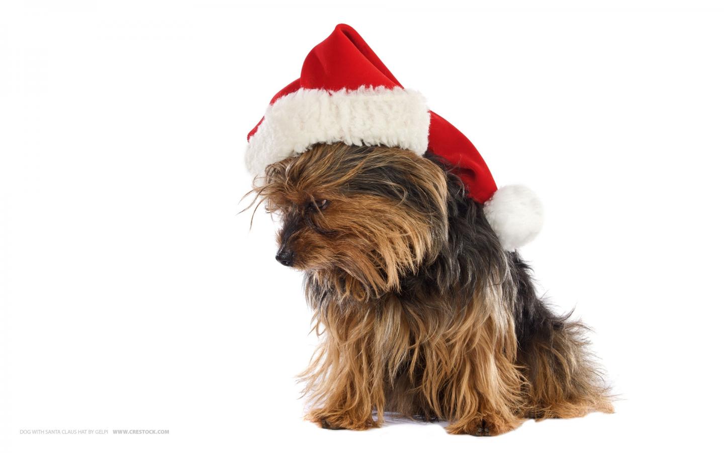 Собачка в костюме Санта Клауса обои для рабочего стола, картинки, фото, 1440x900. | ||||||||||||||||