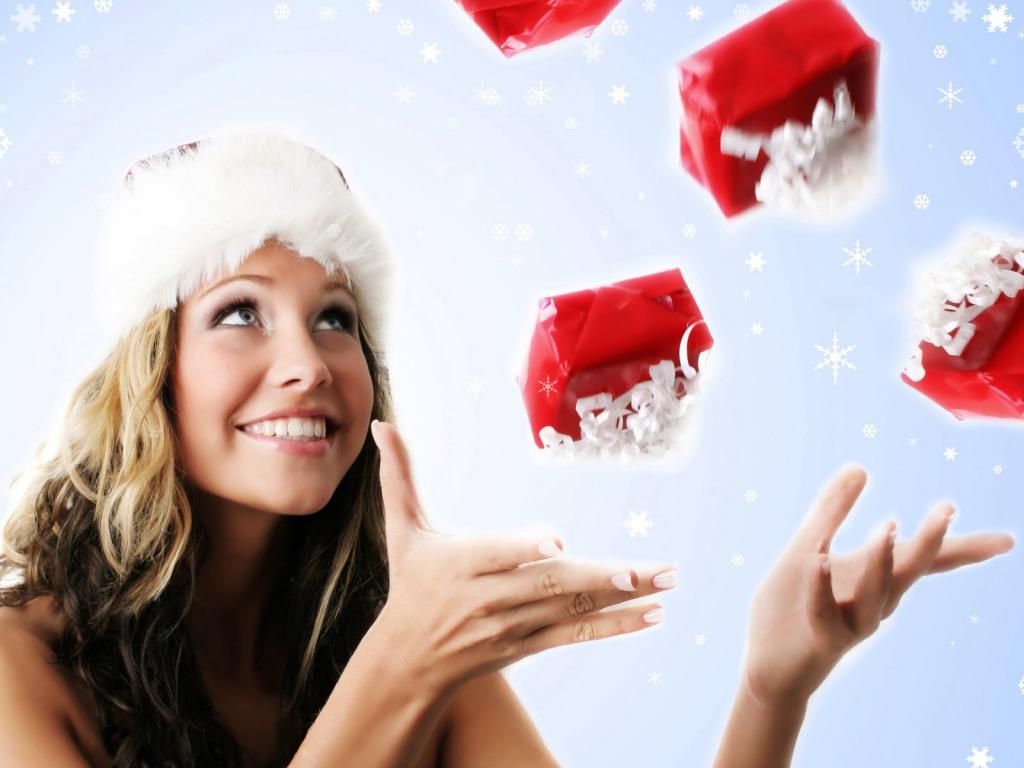 Красотка с новогодними подарками обои для рабочего стола, картинки, фото, 1024x768. | ||||||||||||||||||||||