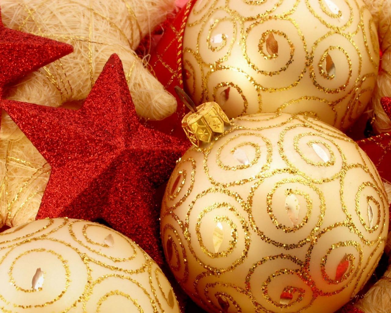 Новый год, шары, золотые, блестки, звездочки, красные, украшения обои для рабочего стола, картинки, фото, 1280x1024. | ||||||||||||||||||||||