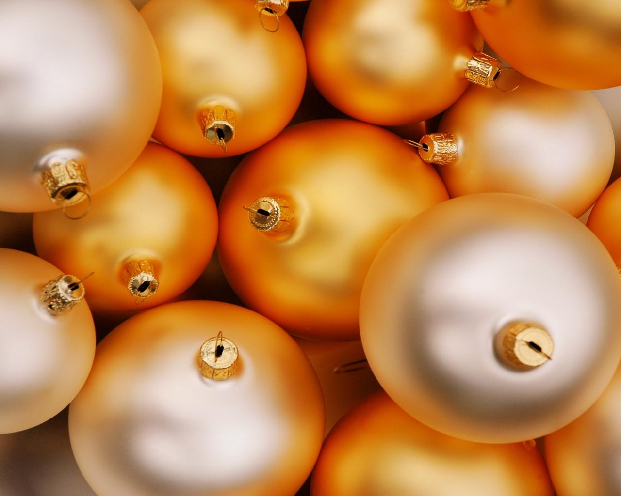 Шарики, праздник, новый год, золотистый обои для рабочего стола, картинки, фото, 1280x1024. | |||||||||||||||||