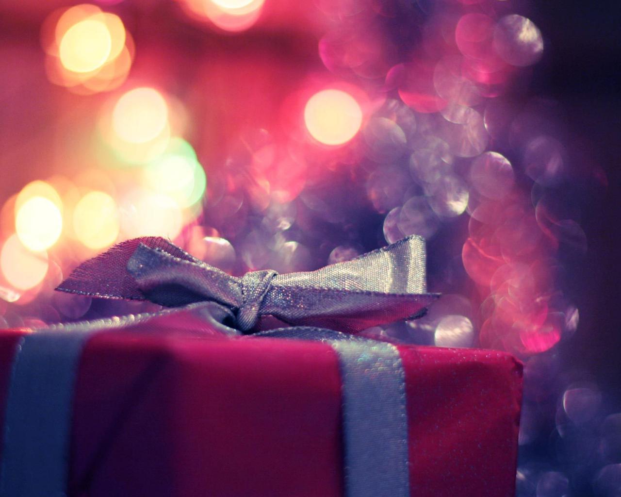 Подарок, сюрприз, праздник, новый год, малиновая, коробочка, фиолетовая, ленточка, бантик, огни, бле обои для рабочего стола, картинки, фото, 1280x1024. | ||||||||||||||||||||||