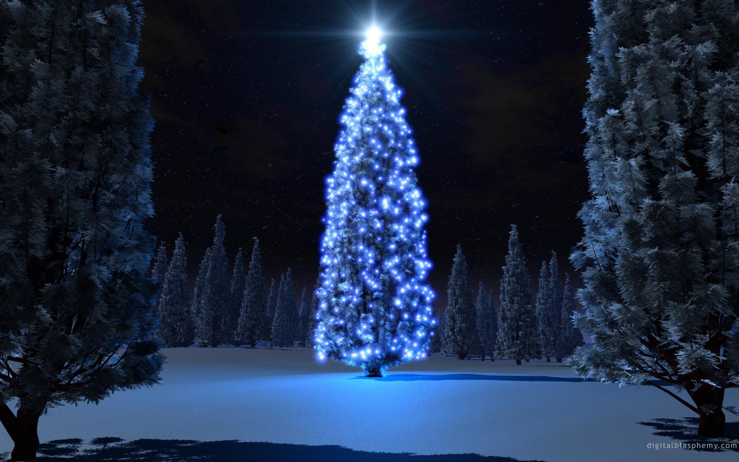 Ёлка, фонарики, ночь обои для рабочего стола, картинки, фото, 1440x900. | ||||||||||||||||