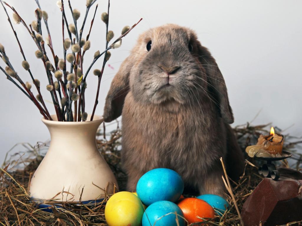 Кролик с пасхальными яйцами обои для рабочего стола, картинки, фото, 1024x768. | ||||||||||||||||