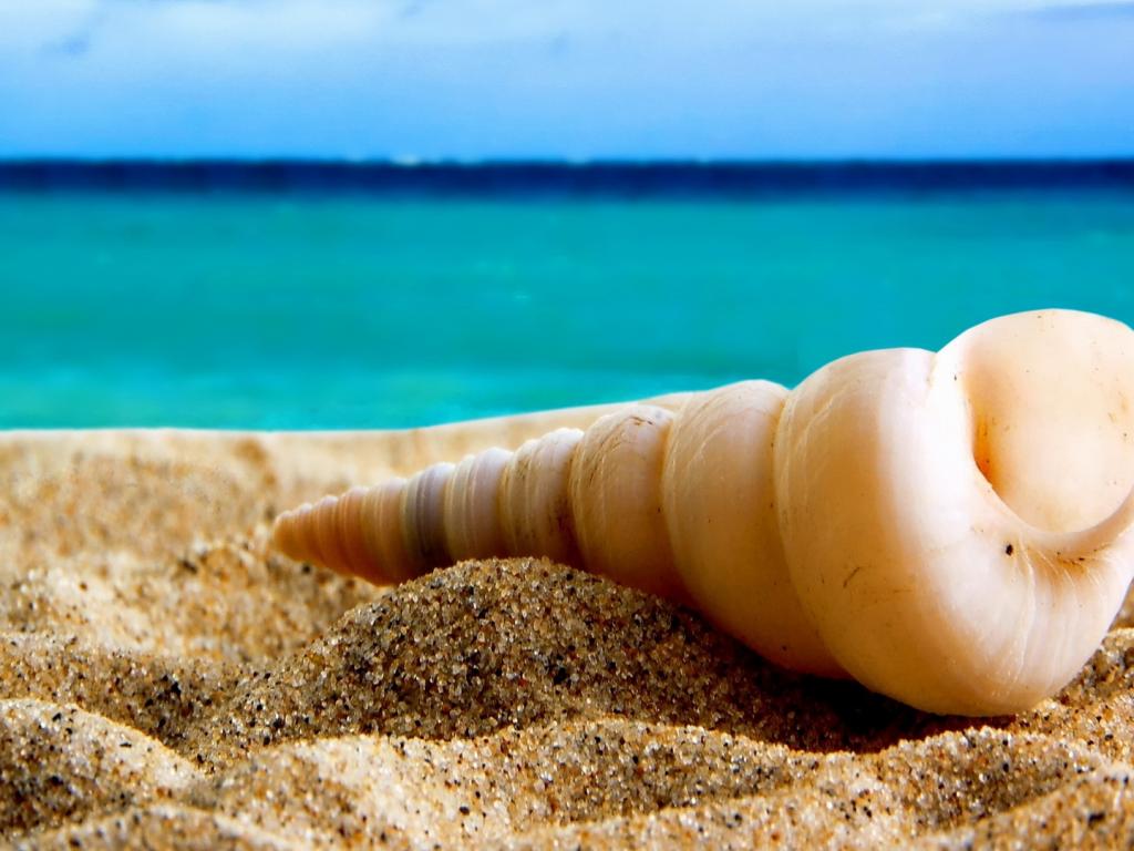 Фон, ракушка, спираль, песок, горизонт, море, фокус обои для рабочего стола, картинки, фото, 1024x768. | ||||||||||||||||||||||