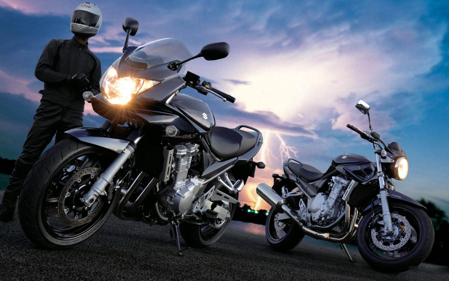 Два мотоцикла, грозовое небо обои для рабочего стола, картинки, фото, 1440x900. | ||||||||||||||||