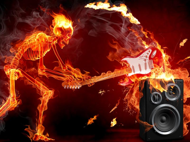 Скелет, гитара, колонка, огонь обои для рабочего стола, картинки, фото, 800x600. | ||||||||||||||||