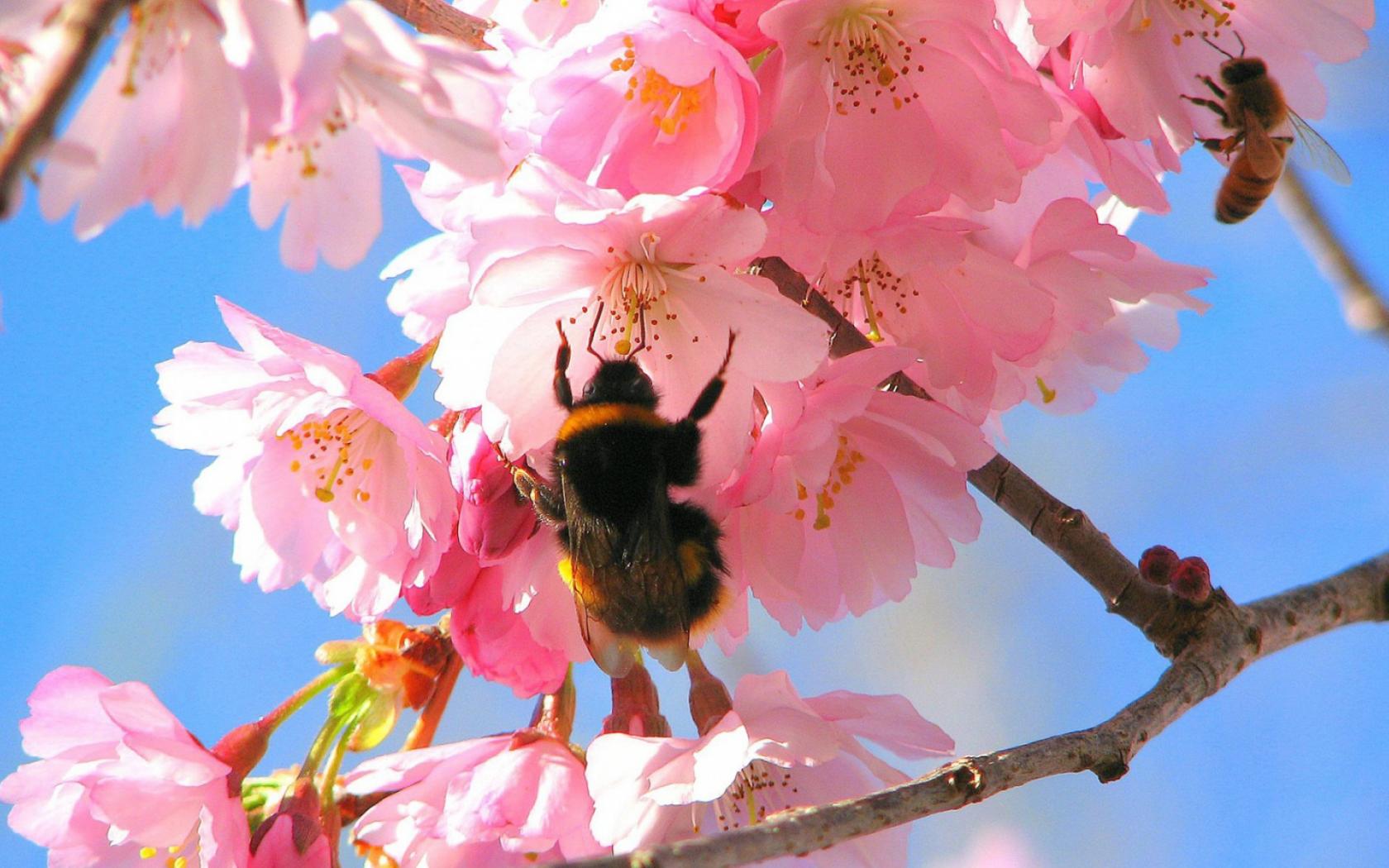 Пчелы На Вишневом Дереве обои для рабочего стола, картинки, фото, 1680x1050. | ||||||||||||||||
