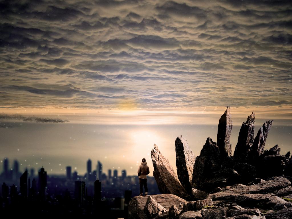 Человек над городом обои для рабочего стола, картинки, фото, 1024x768. | |||||||||||||||||