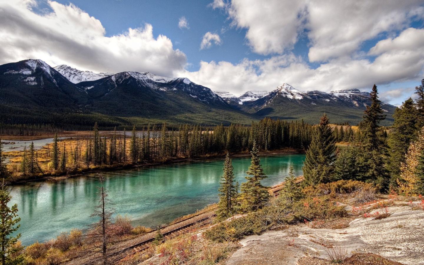 Железная дорога вдоль реки обои для рабочего стола, картинки, фото, 1440x900. | ||||||||||||||||