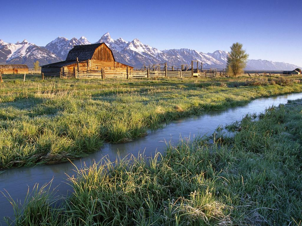 Дом в глуши, речушка и горы обои для рабочего стола, картинки, фото, 1024x768. | ||||||||||||||||||||||