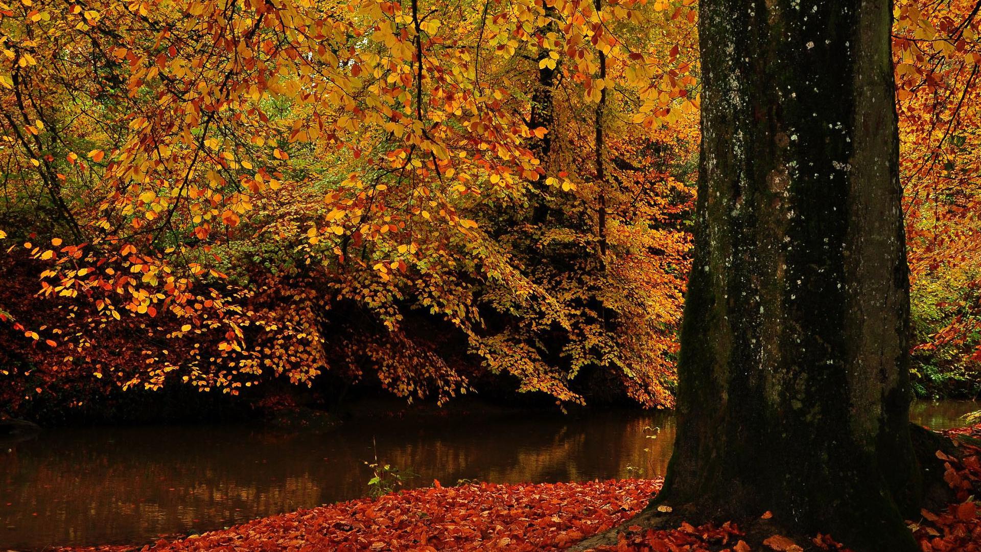 Осенние листья в лесу обои для рабочего стола, картинки, фото, 1920x1080. | ||||||||||||||||