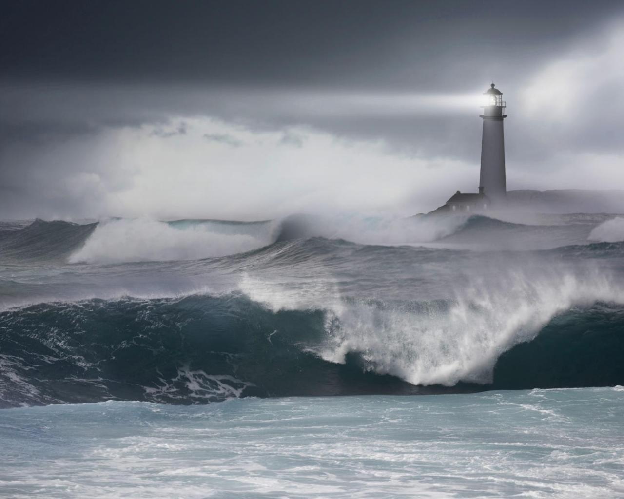 Маяк в бушующем море обои для рабочего стола, картинки, фото, 1280x1024. | ||||||||||||||||