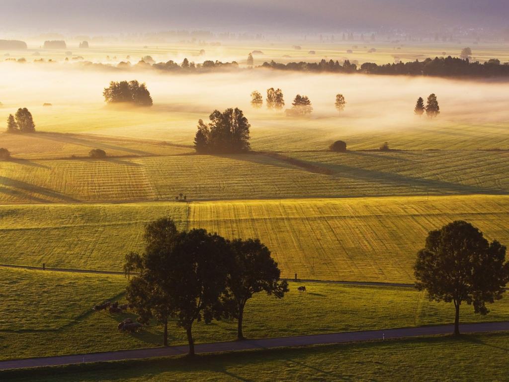 Поля в тумане обои для рабочего стола, картинки, фото, 1024x768. | ||||||||||||||||