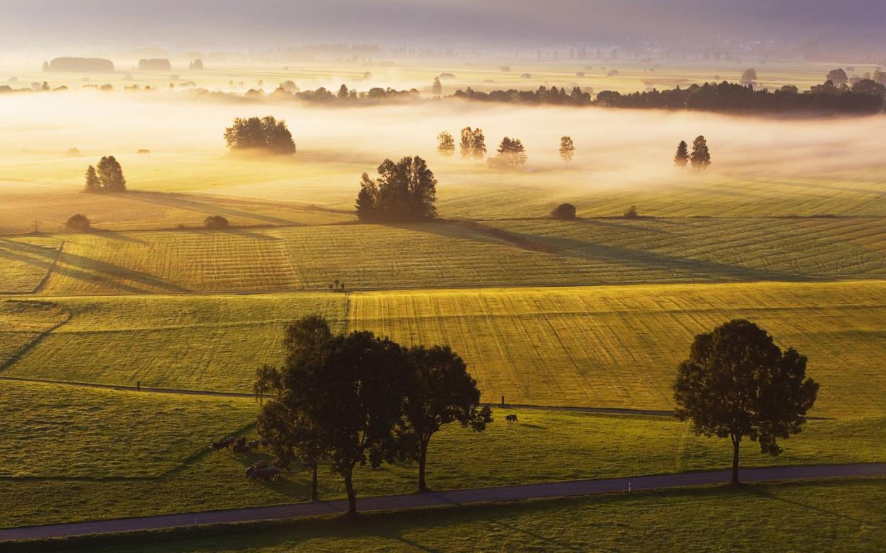 Поля в тумане обои для рабочего стола, картинки, фото, 1280x800. | ||||||||||||||||