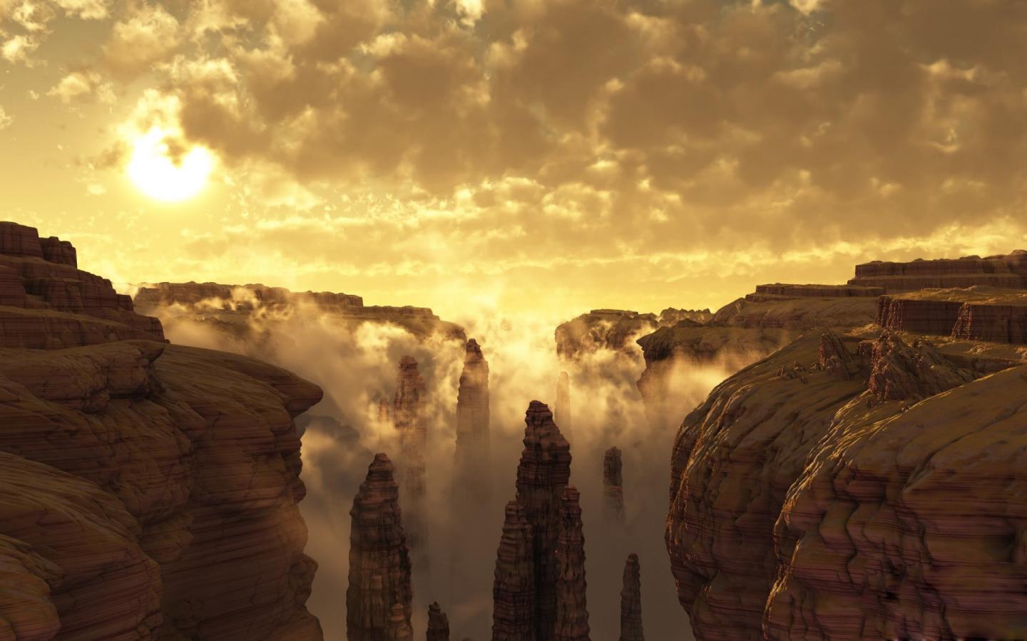 Коньон в тумане обои для рабочего стола, картинки, фото, 1440x900. | ||||||||||||||
