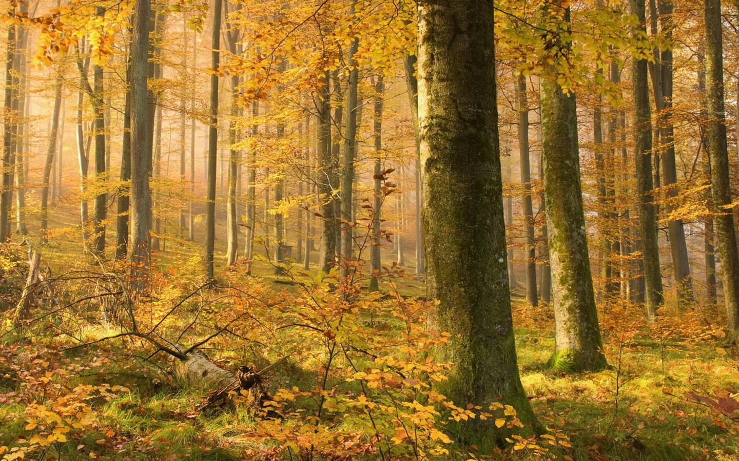 Лес ранней осенью обои для рабочего стола, картинки, фото, 1440x900. | ||||||||||||||||