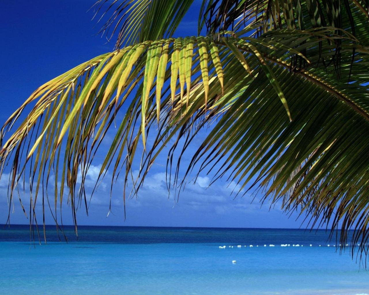 Ветка пальмы и море обои для рабочего стола, картинки, фото, 1280x1024. | ||||||||||||||||