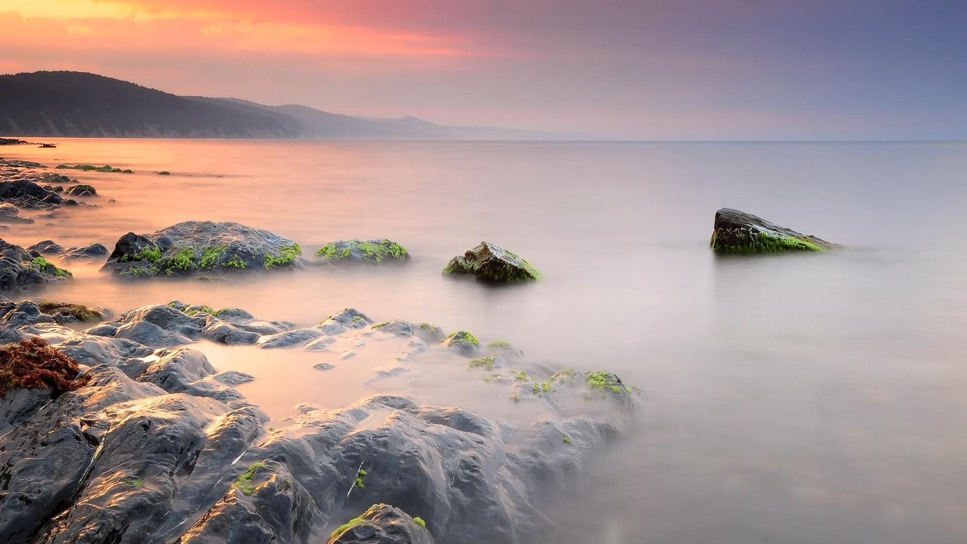 Море, камни, водоросли, рассвет обои для рабочего стола, картинки, фото, 1920x1080. | ||||||||||||||||||||||