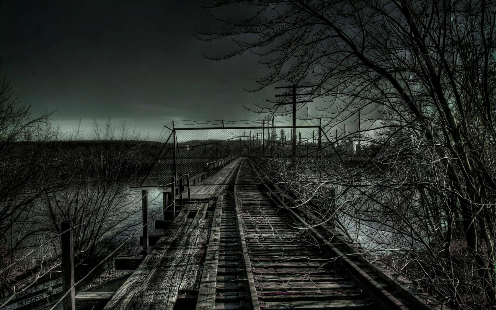 Железная, дорога, мрак, ветки обои для рабочего стола, картинки, фото, 1680x1050. | |||||||||||||||||