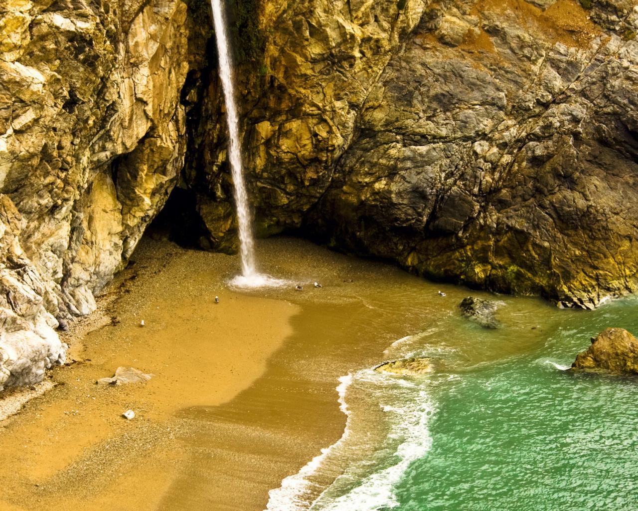Скалы, водопад, песок обои для рабочего стола, картинки, фото, 1280x1024. | |||||||||||||||||