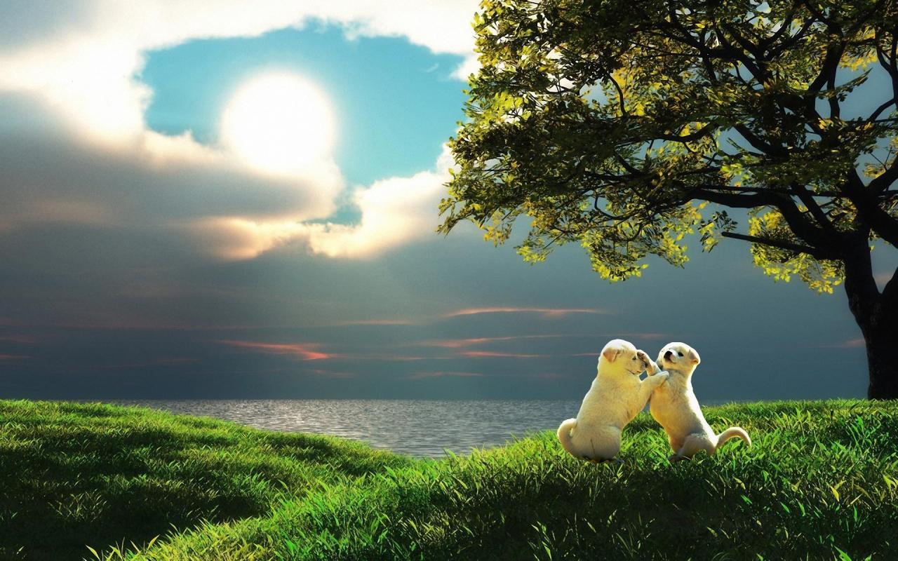 Щенки, море, трава обои для рабочего стола, картинки, фото, 1280x800. | ||||||||||||||||