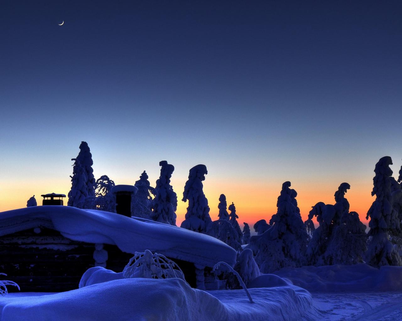 Зима, вечер, охотничий домик обои для рабочего стола, картинки, фото, 1280x1024. | |||||||||||||||||