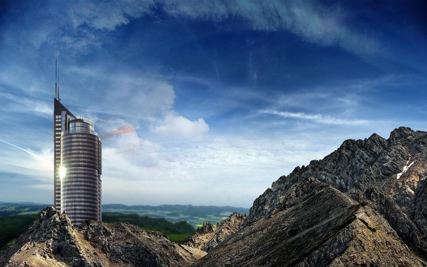 Небоскреб в горах, скачтаь 1920х1200 обои для рабочего стола, картинки, фото, 1440x900. | ||||||||||||||||||||||
