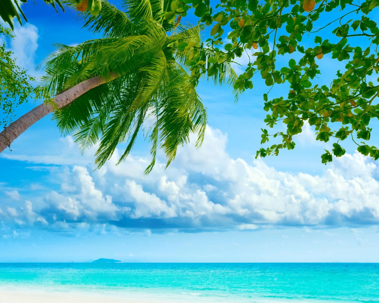 Райский уголок, пальма, океан обои для рабочего стола, картинки, фото, 1280x1024. | ||||||||||||||||