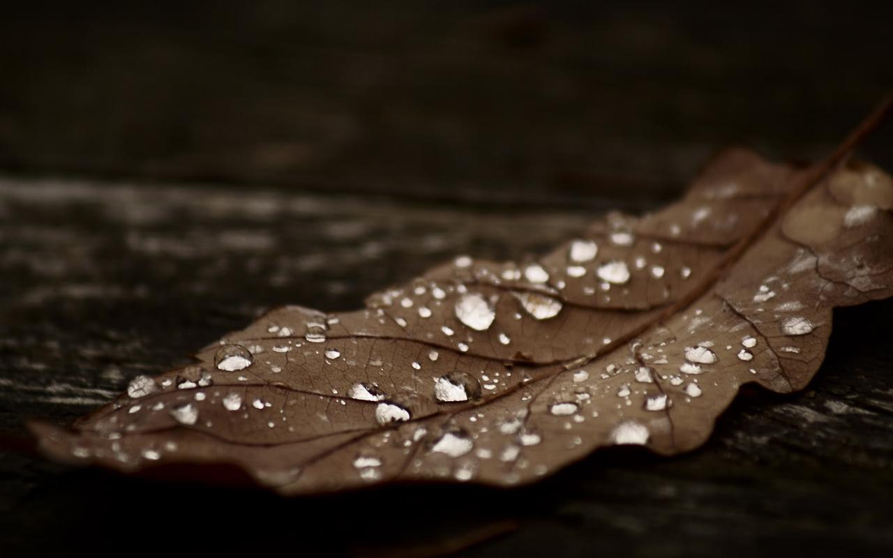 Капельки росы на коричневом листике, красивые осенние обои для рабочего стола, картинки, фото, 1280x800. | ||||||||||||||||||||||