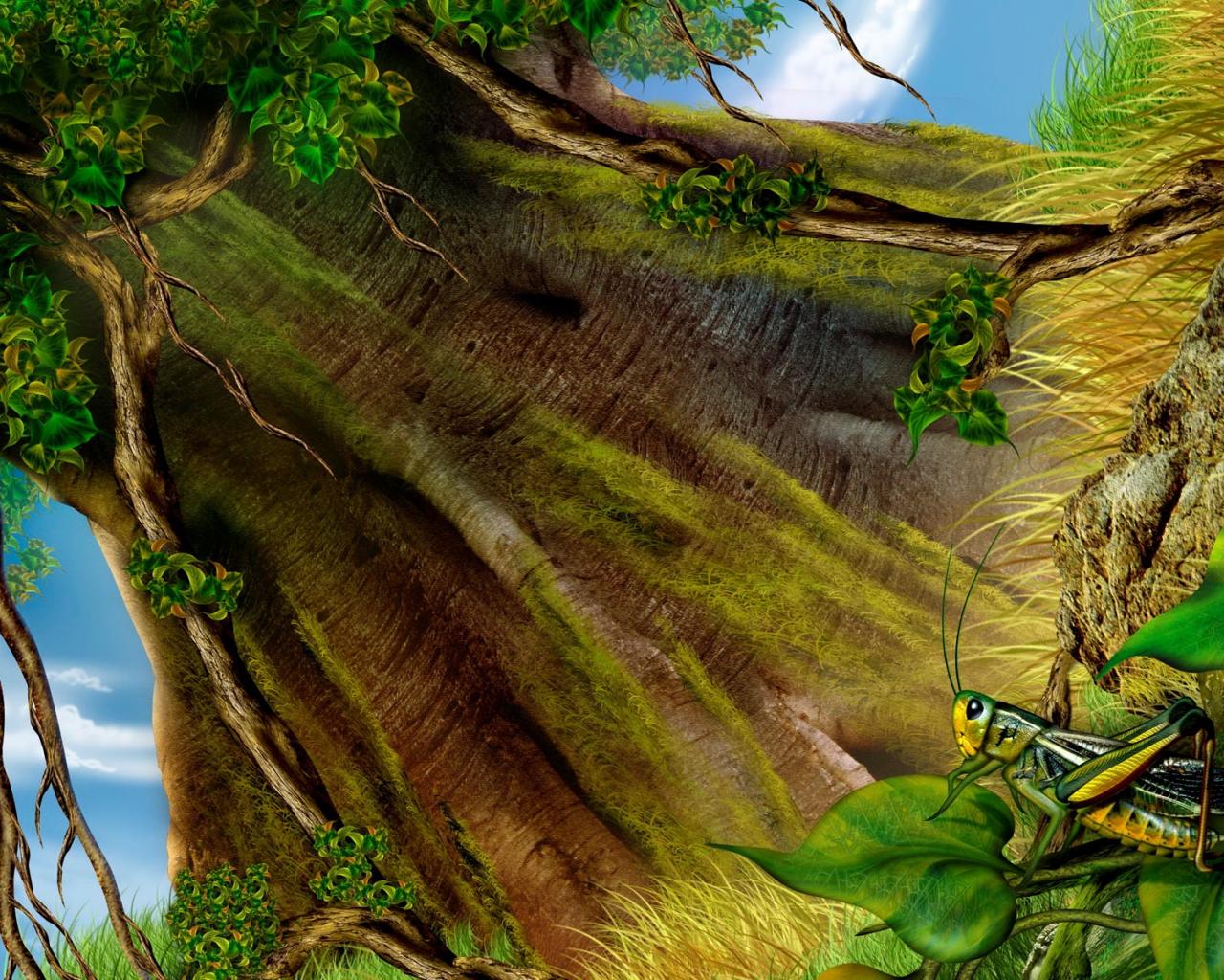 Дерево, кузнечик, рисунок, трава обои для рабочего стола, картинки, фото, 1280x1024. | ||||||||||||||||||||||