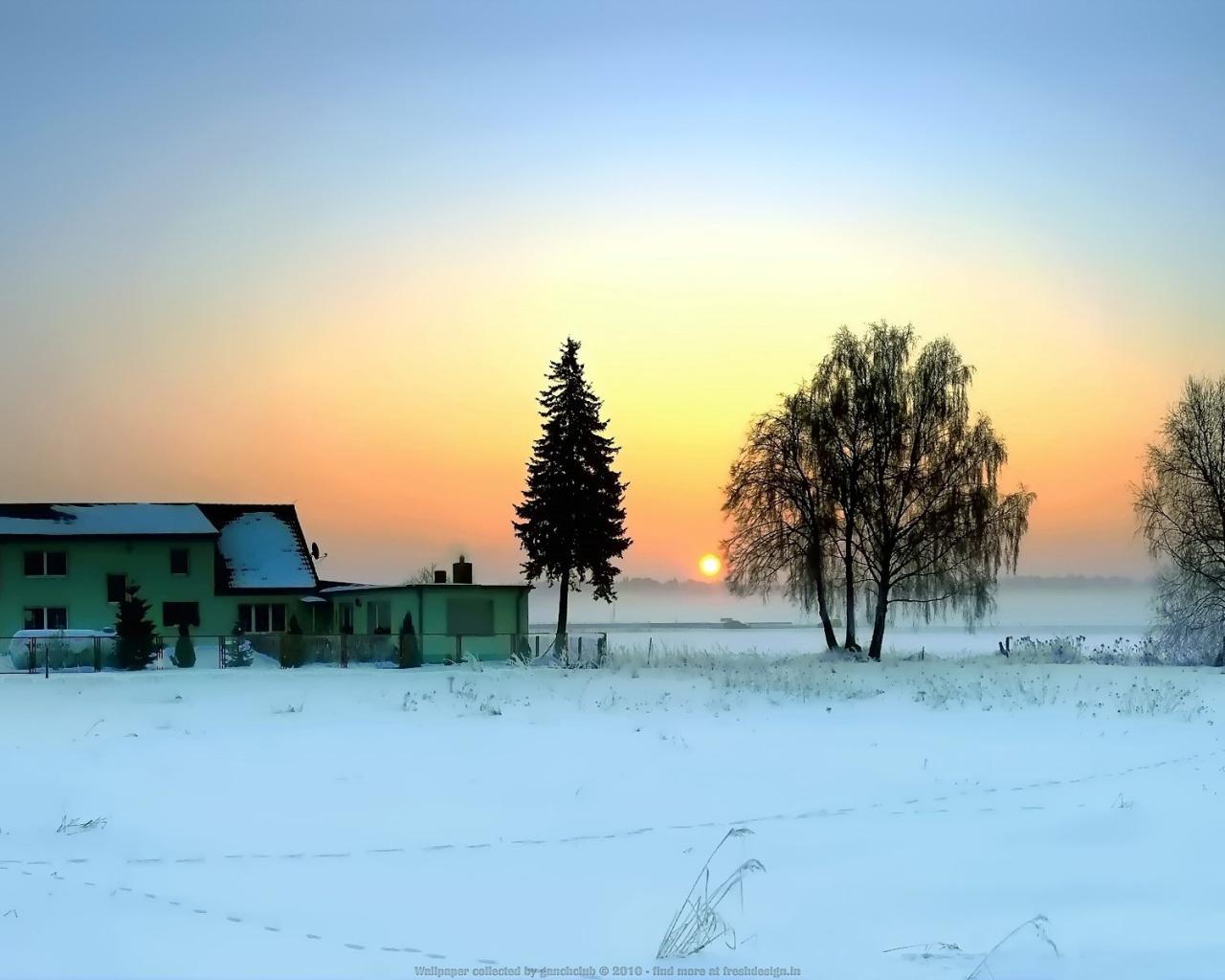 Зима, домик, закат, снег обои для рабочего стола, картинки, фото, 1280x1024. | ||||||||||||||||