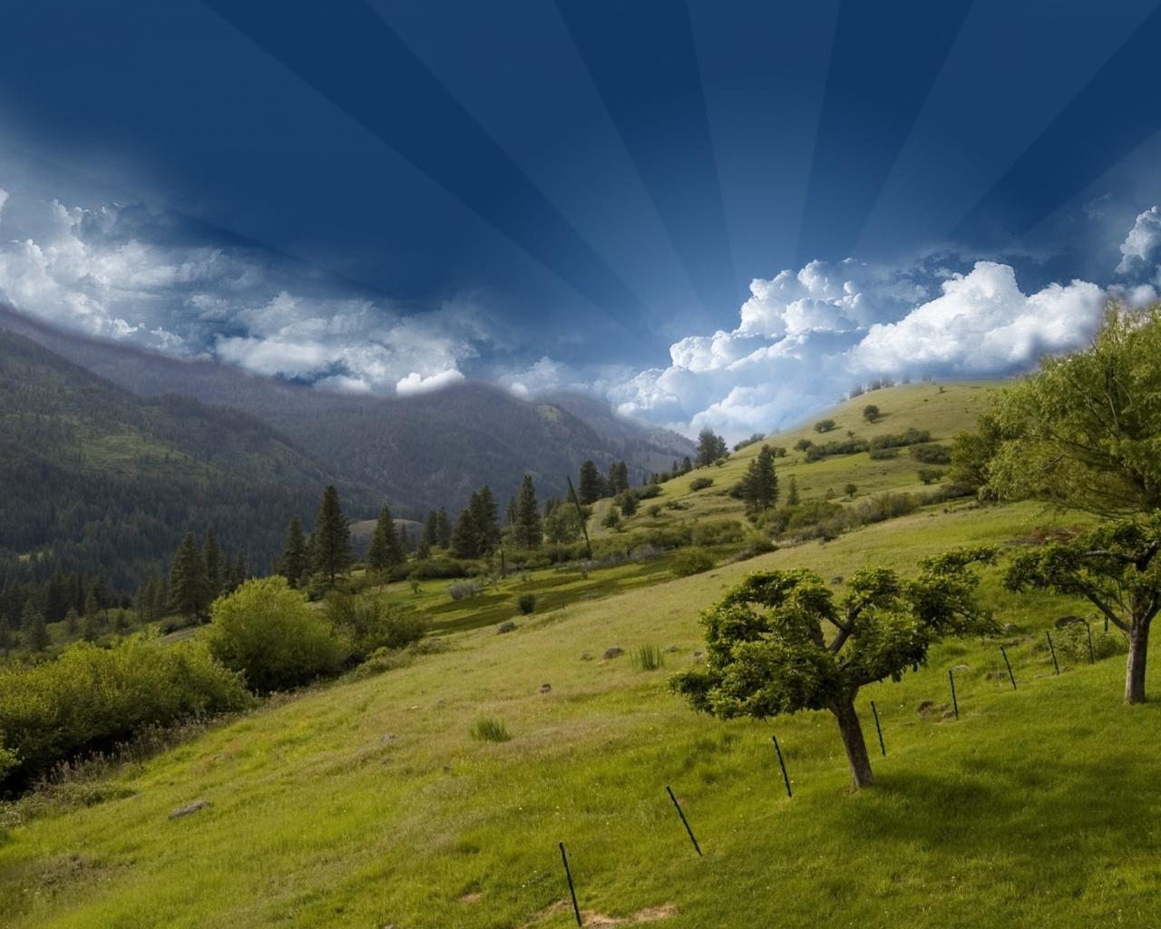 Небо, облака, лес, деревья, луг, полосы, холмы обои для рабочего стола, картинки, фото, 1280x1024. | ||||||||||||||||||||||