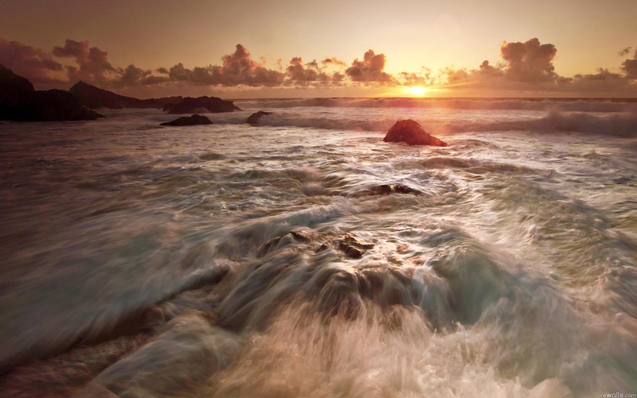 Рассвет, океан, камни обои для рабочего стола, картинки, фото, 1280x800. | ||||||||||||||||