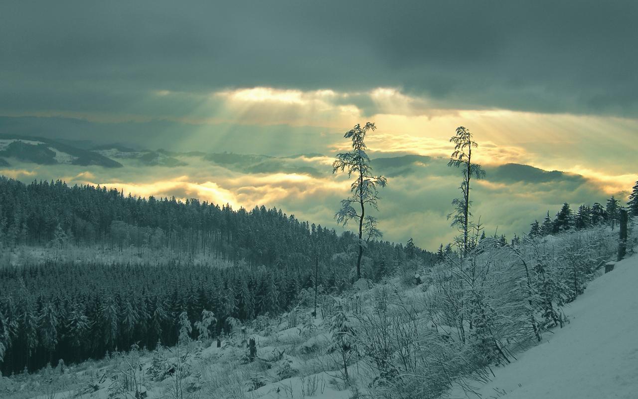 Лучи, лес, снег обои для рабочего стола, картинки, фото, 1280x800. | ||||||||||||||