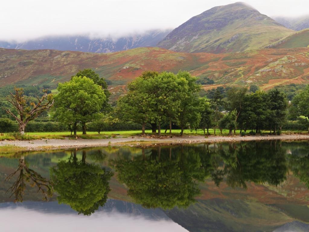 Горы, озеро, деревья, отражение, гладь обои для рабочего стола, картинки, фото, 1024x768. | |||||||||||||||||