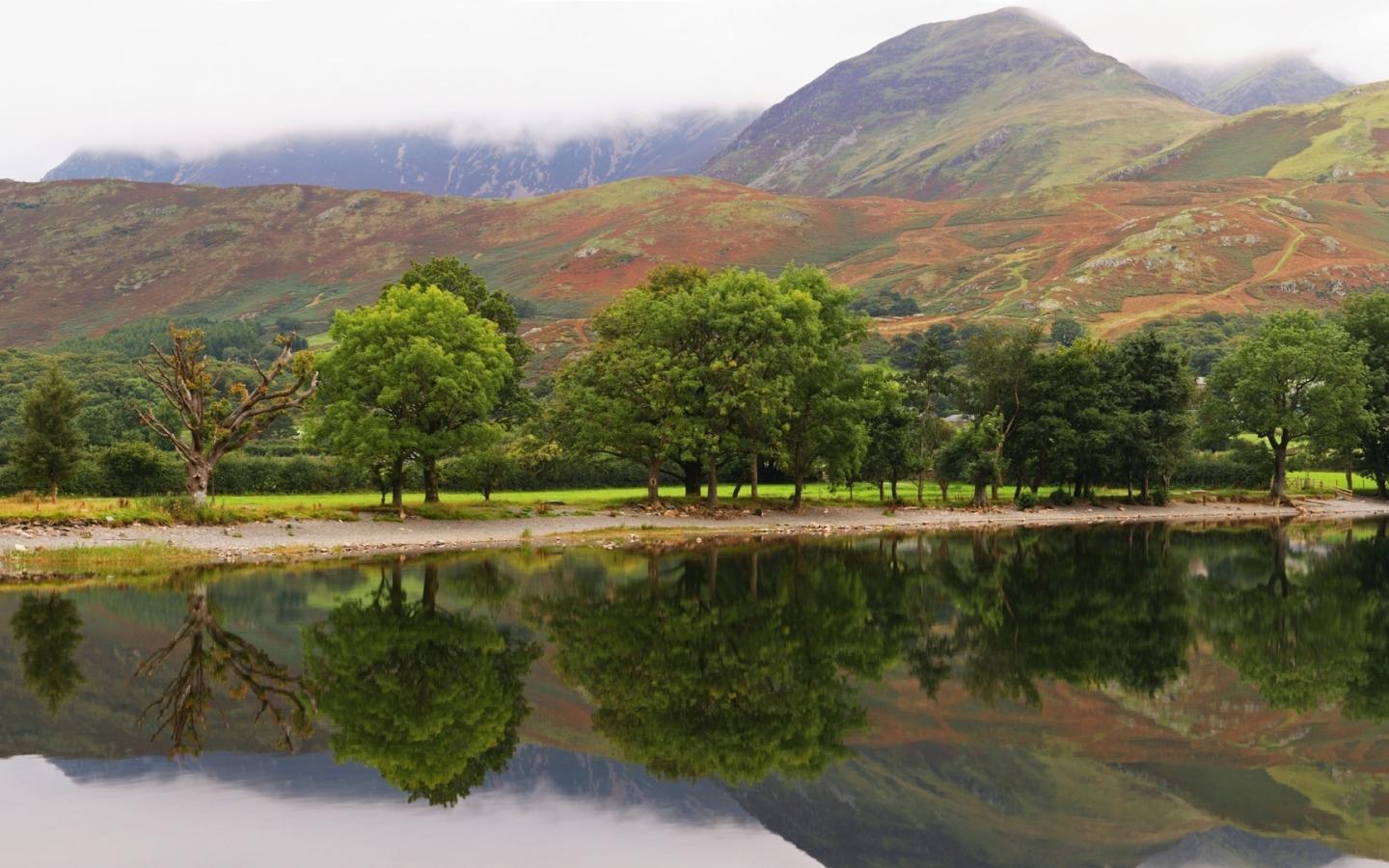 Горы, озеро, деревья, отражение, гладь обои для рабочего стола, картинки, фото, 1440x900. | |||||||||||||||||
