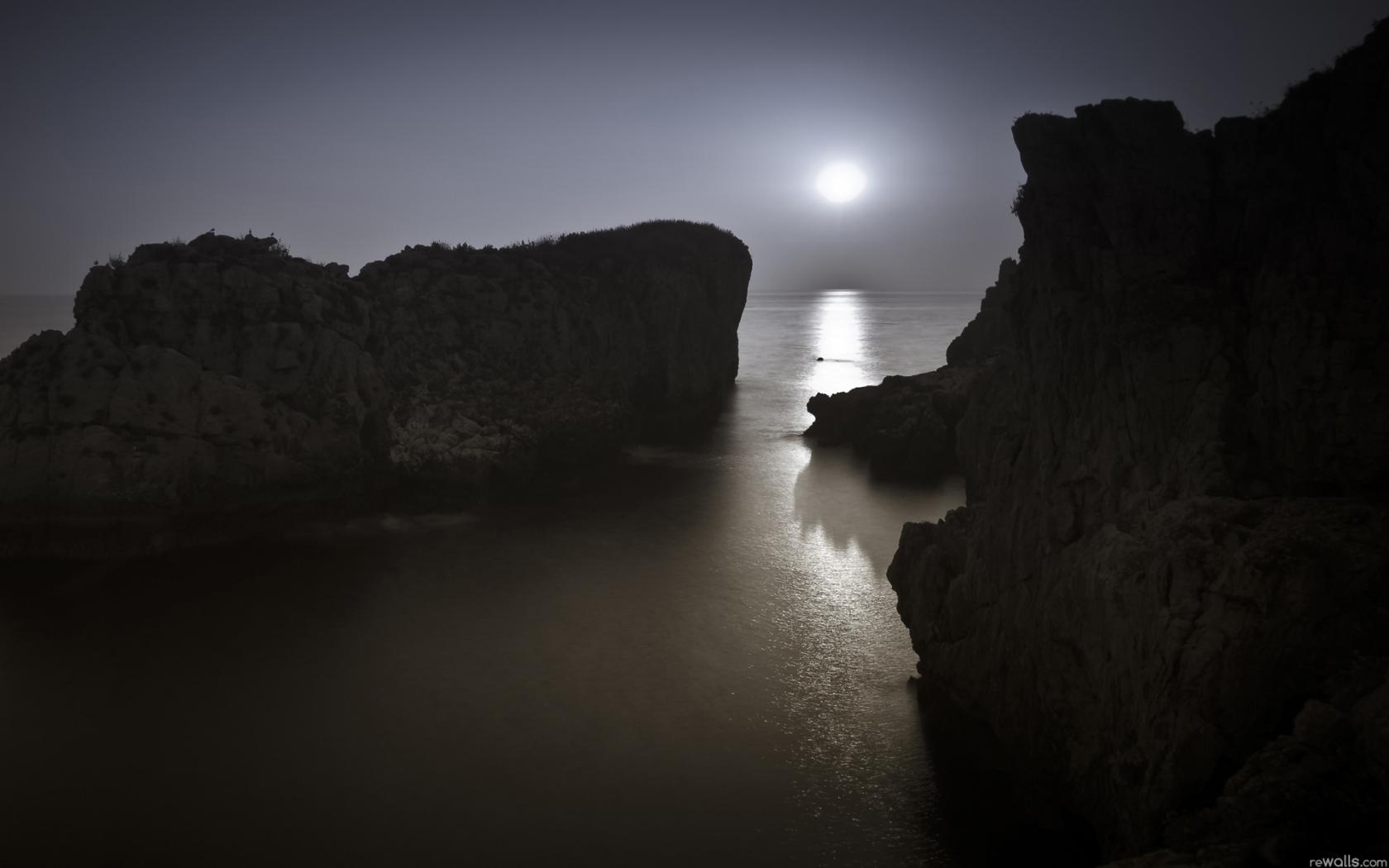 Ночь, скалы, море обои для рабочего стола, картинки, фото, 1680x1050. | |||||||||||||||||
