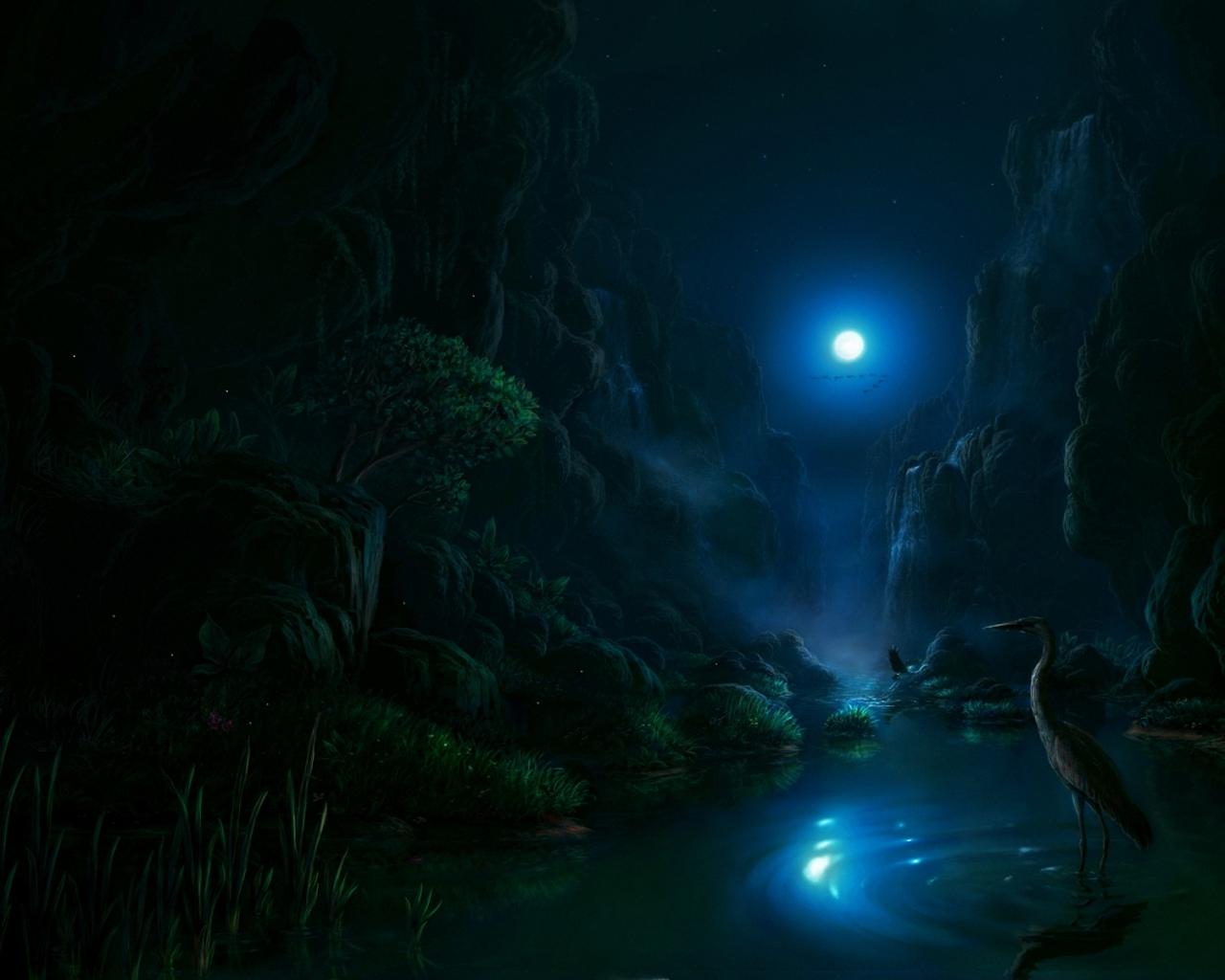 Ночь, цапля, луна обои для рабочего стола, картинки, фото, 1280x1024. | |||||||||||||||||