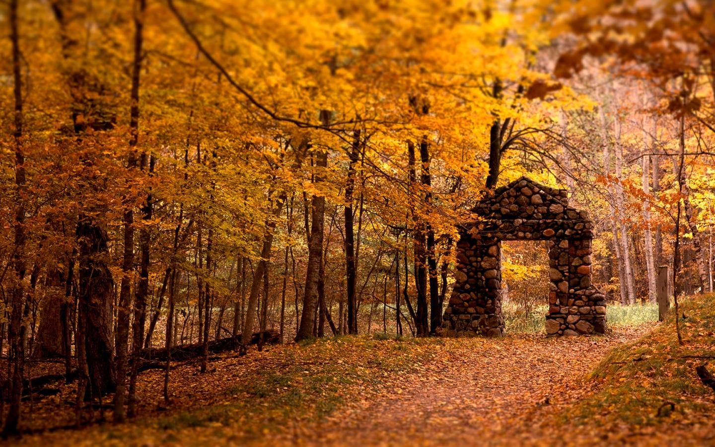 Каменная арка в осеннем лесу обои для рабочего стола, картинки, фото, 1440x900. | |||||||||||||||||