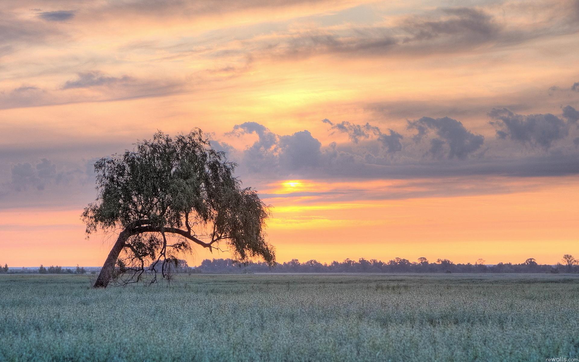 Закат, поле, дерево, пейзаж обои для рабочего стола, картинки, фото, 1920x1200. | |||||||||||||||||