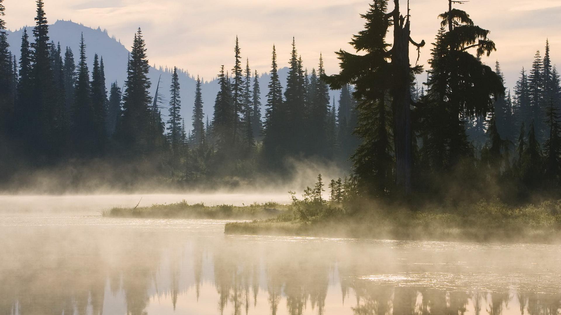 Озеро, вода, лес, туман, ель, отражение обои для рабочего стола, картинки, фото, 1920x1080. | ||||||||||||||||||||||