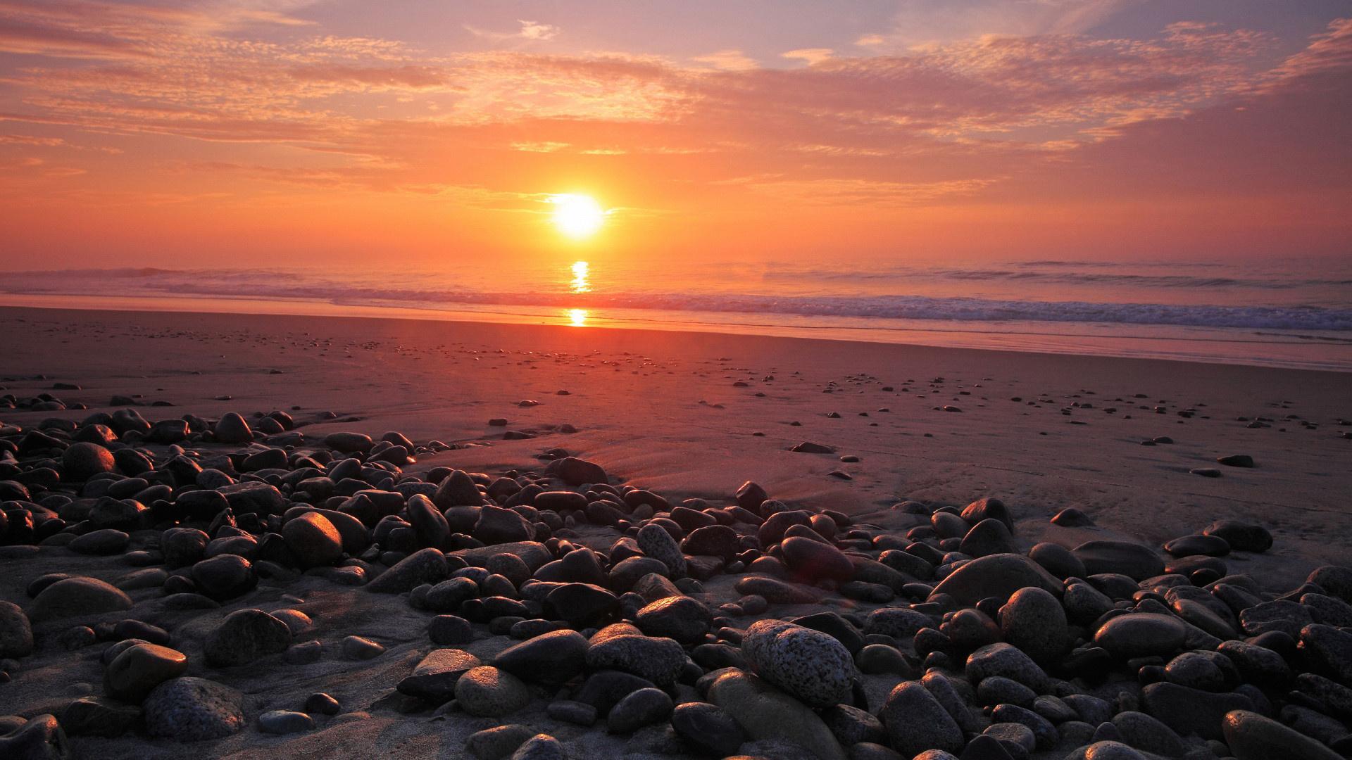 Море, галька, закат обои для рабочего стола, картинки, фото, 1920x1080. | ||||||||||||||||
