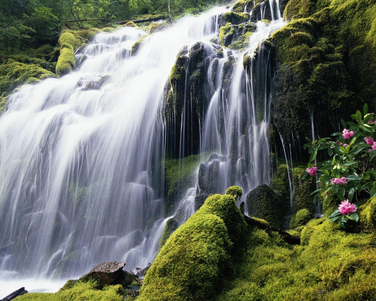 Водопад, мох, цветы обои для рабочего стола, картинки, фото, 1280x1024. | ||||||||||||||||