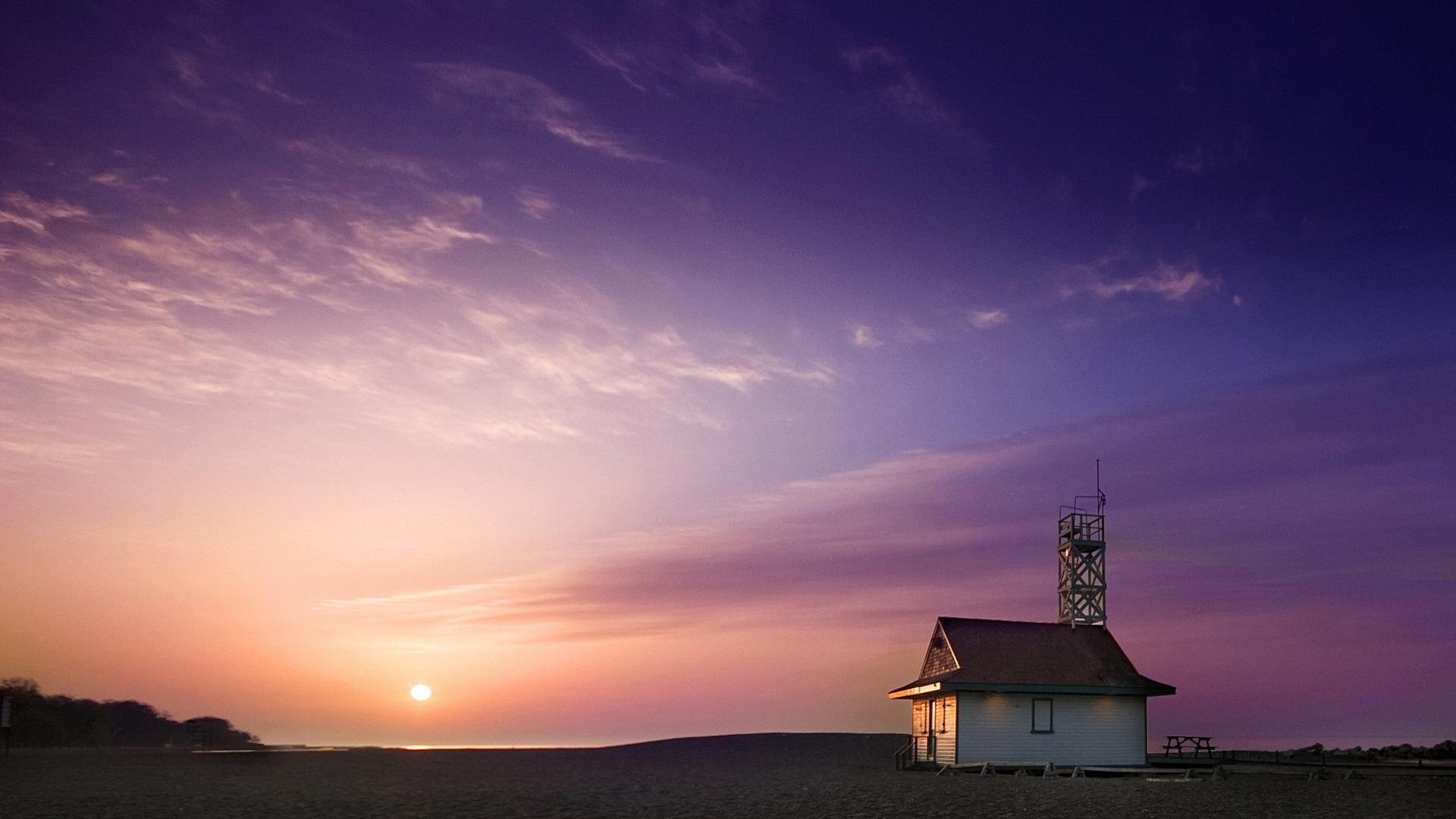 Берег, дом, солнце, облака, небо обои для рабочего стола, картинки, фото, 1920x1080. | ||||||||||||||||