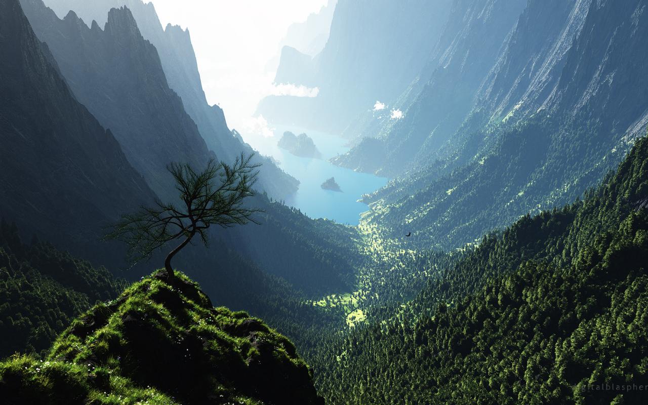 Ущелье, горы, река, деревья обои для рабочего стола, картинки, фото, 1280x800. | |||||||||||||||||