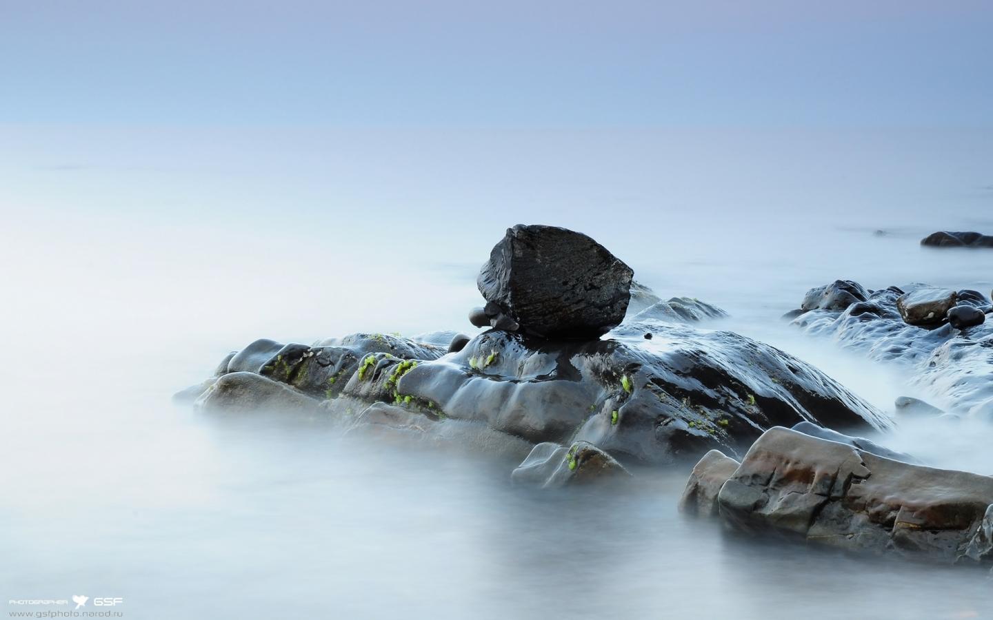 Камни, вода, утро обои для рабочего стола, картинки, фото, 1440x900. | ||||||||||||||||