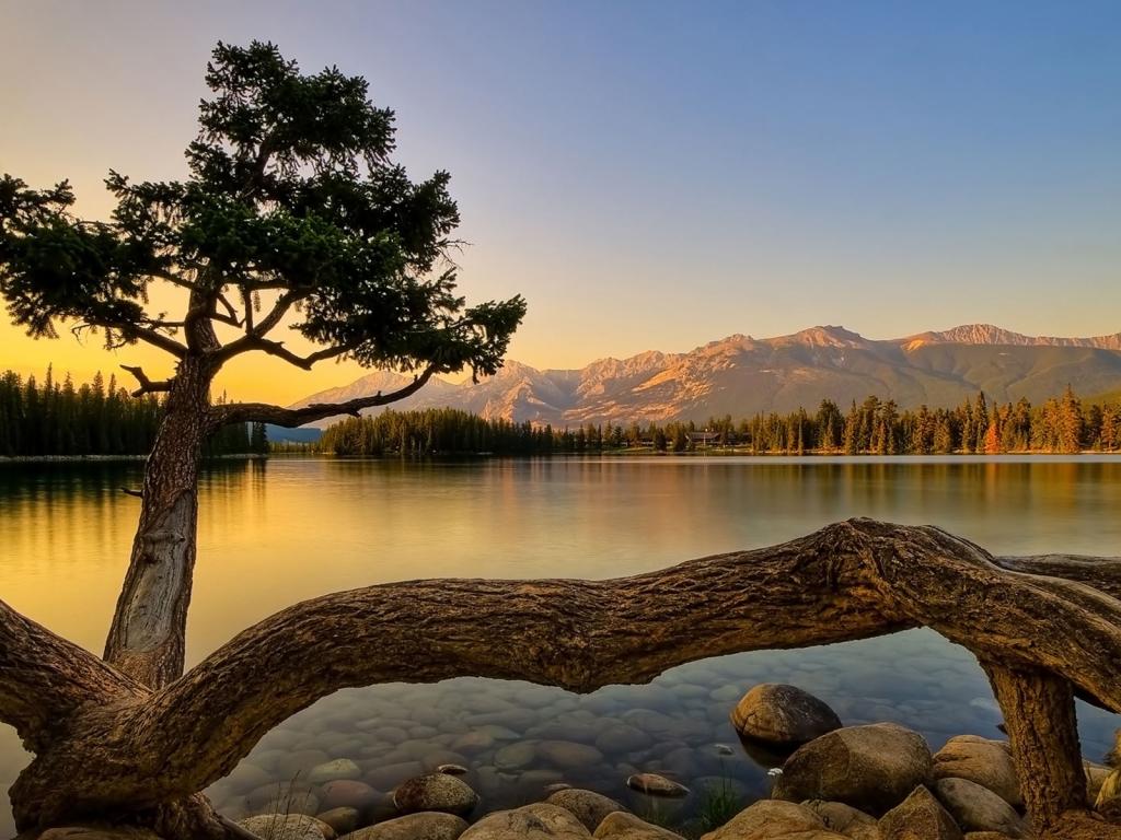 Горное озеро на закате обои для рабочего стола, картинки, фото, 1024x768. | ||||||||||||||||